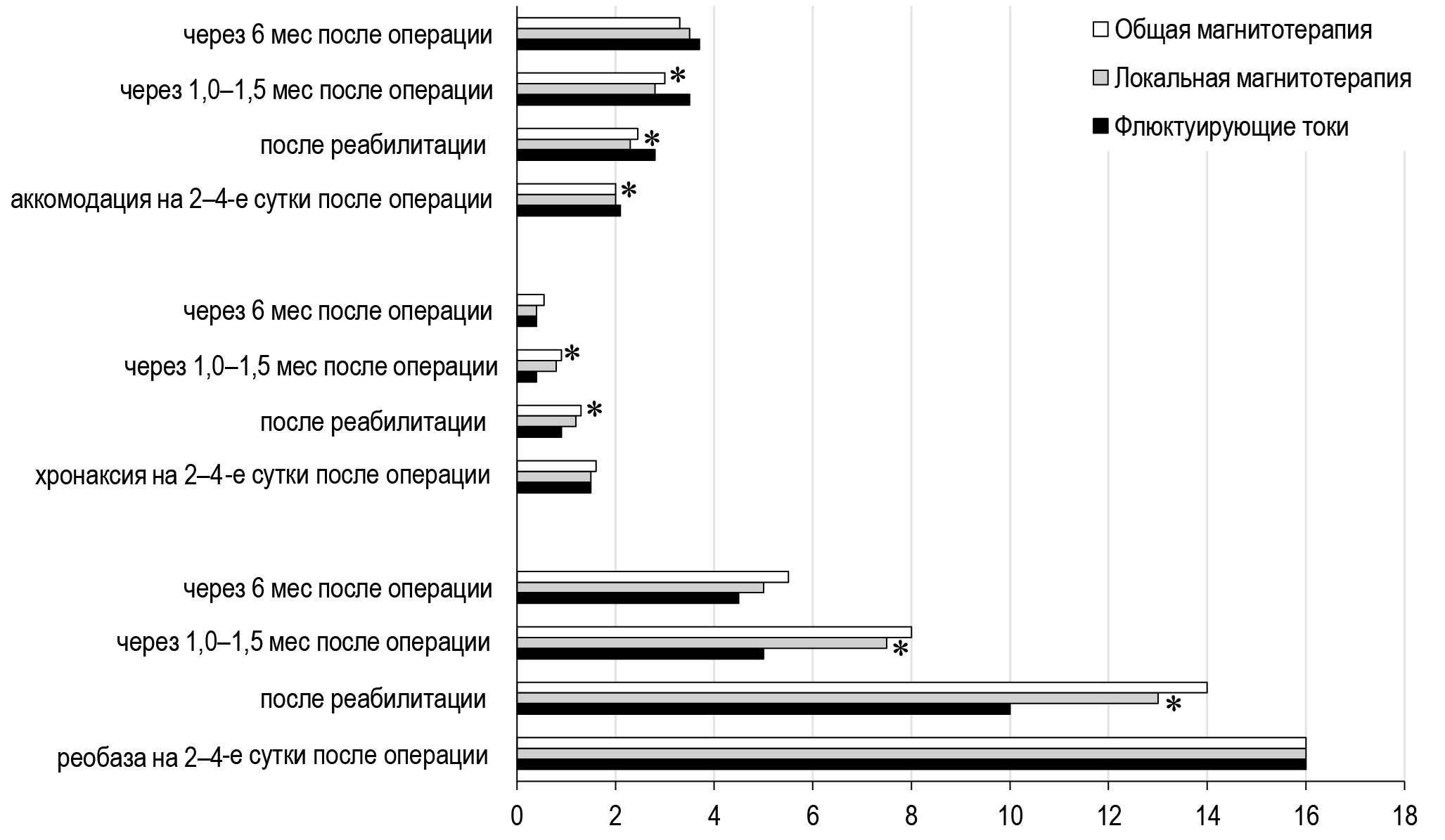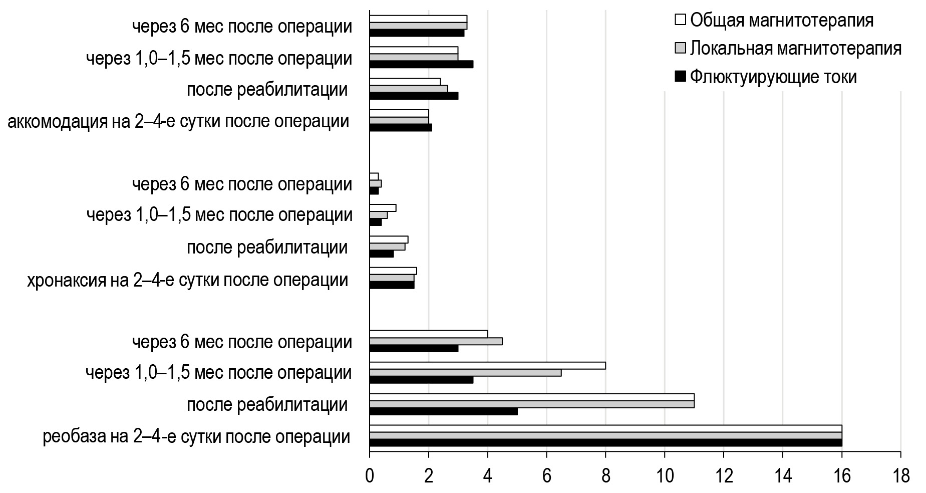 Локальная магнитотерапия (сравнения, n=33) | 24,5 | 18,0 | 11,5 | 6,0 | <0,0001 |