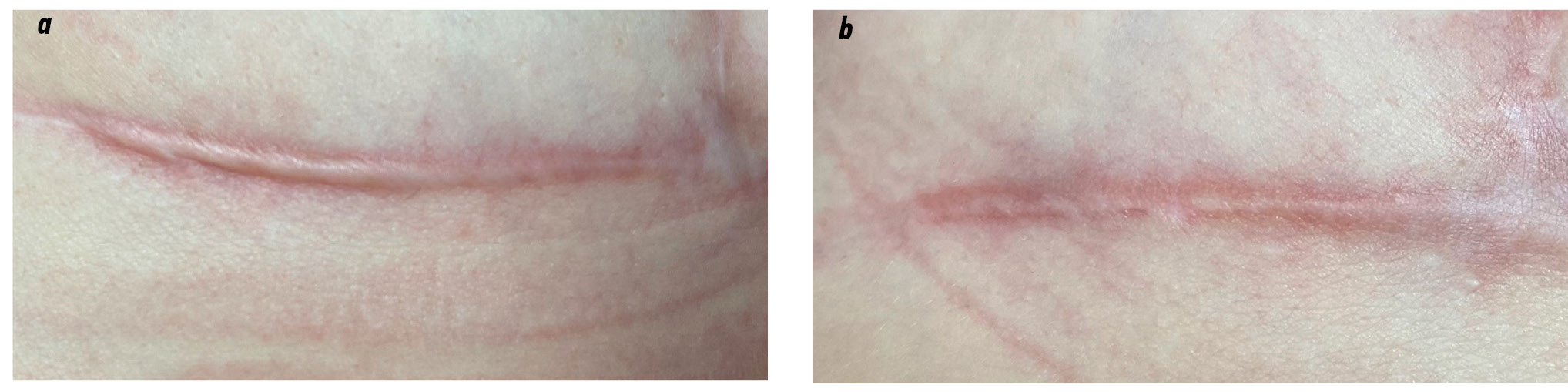 Fig. 3. Hypertrophic scars before (a) and after (b) treatment.