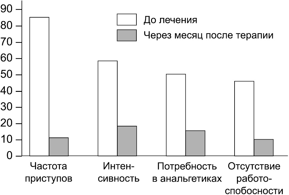Средний балл по адаптированной шкале боли до лечения составлял 220 ± 5,5, после показатель улучшился на 69,5% и составил 67 ± 5,5 (рис. 3).