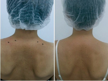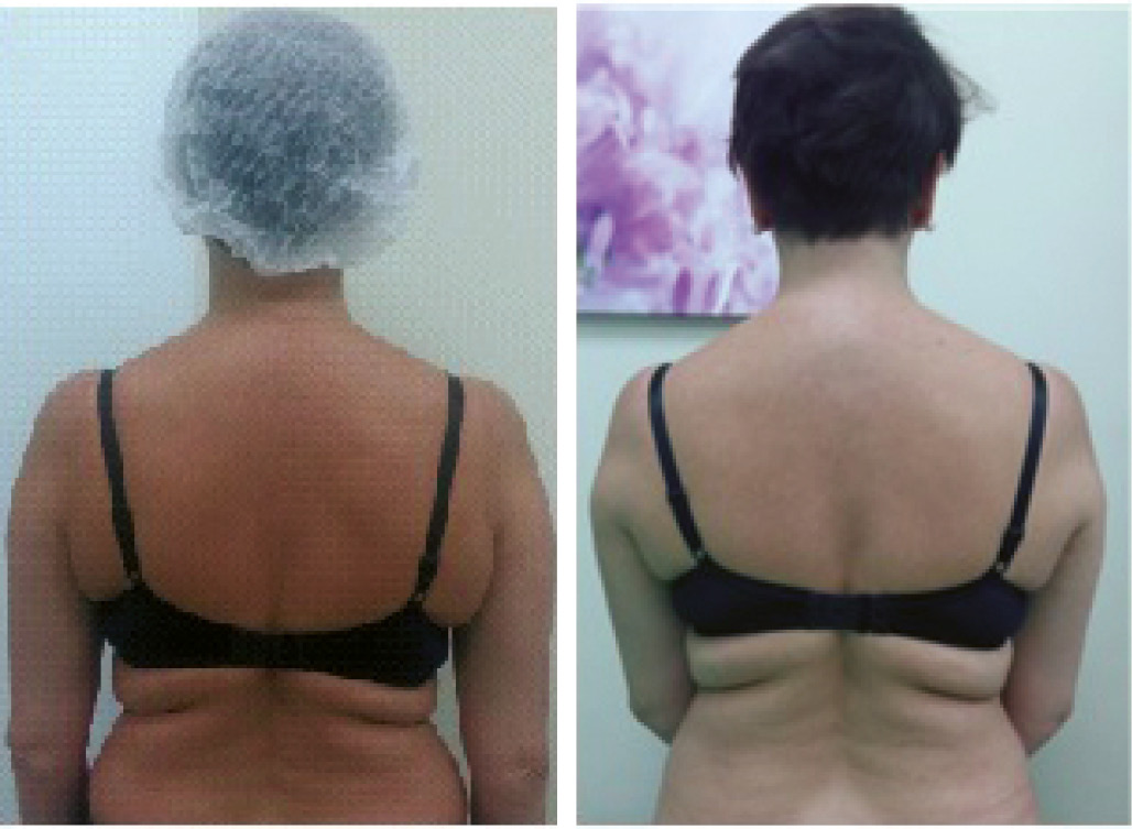 Рис. 6. Результаты до и через 1 месяц после проведения лечения ботулиническим нейротоксином А по кожным триггерным точкам спины