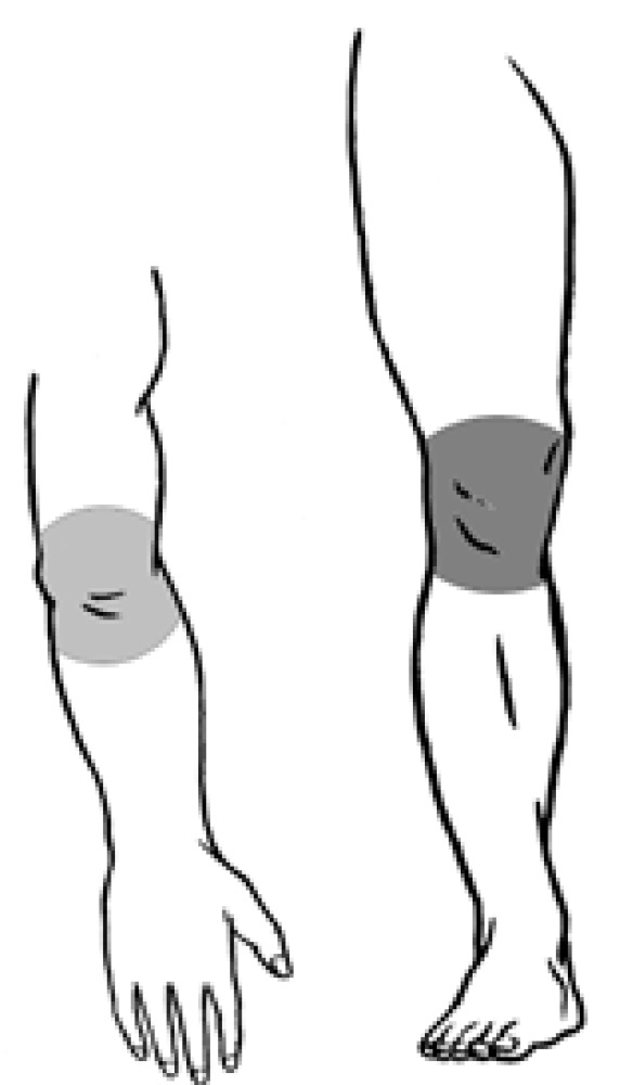 Второй этап — область костного перелома на верхней (см. рис. 14) или нижней конечности (см. рис. 15) с захватом участков конечности ниже и выше уровня перелома.