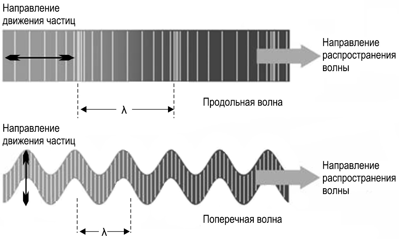 Любое колеблющееся тело (например, периодически сжимающаяся и разжимающаяся до прежнего состояния твёрдая пластина) заставляет колебаться себе в такт окружающую воздушную, жидкую или другую среду. Упругие механические колебания среды выражаются в том, что прилегающие к твёрдому телу слои воздуха или жидкости периодически поочерёдно сжимаются и разрежаются (разжимаются). Каждое колебание среды, состоящее из одного сжатия и разрежения, называется волной. Энергия, которую получают прилегающие к твёрдому телу слои воздуха или жидкости (и в результате которой они колеблются), передаётся соседним слоям, вызывая, соответственно, их колебания; другими словами, волны распространяются в среде, окружающей колеблющееся тело.