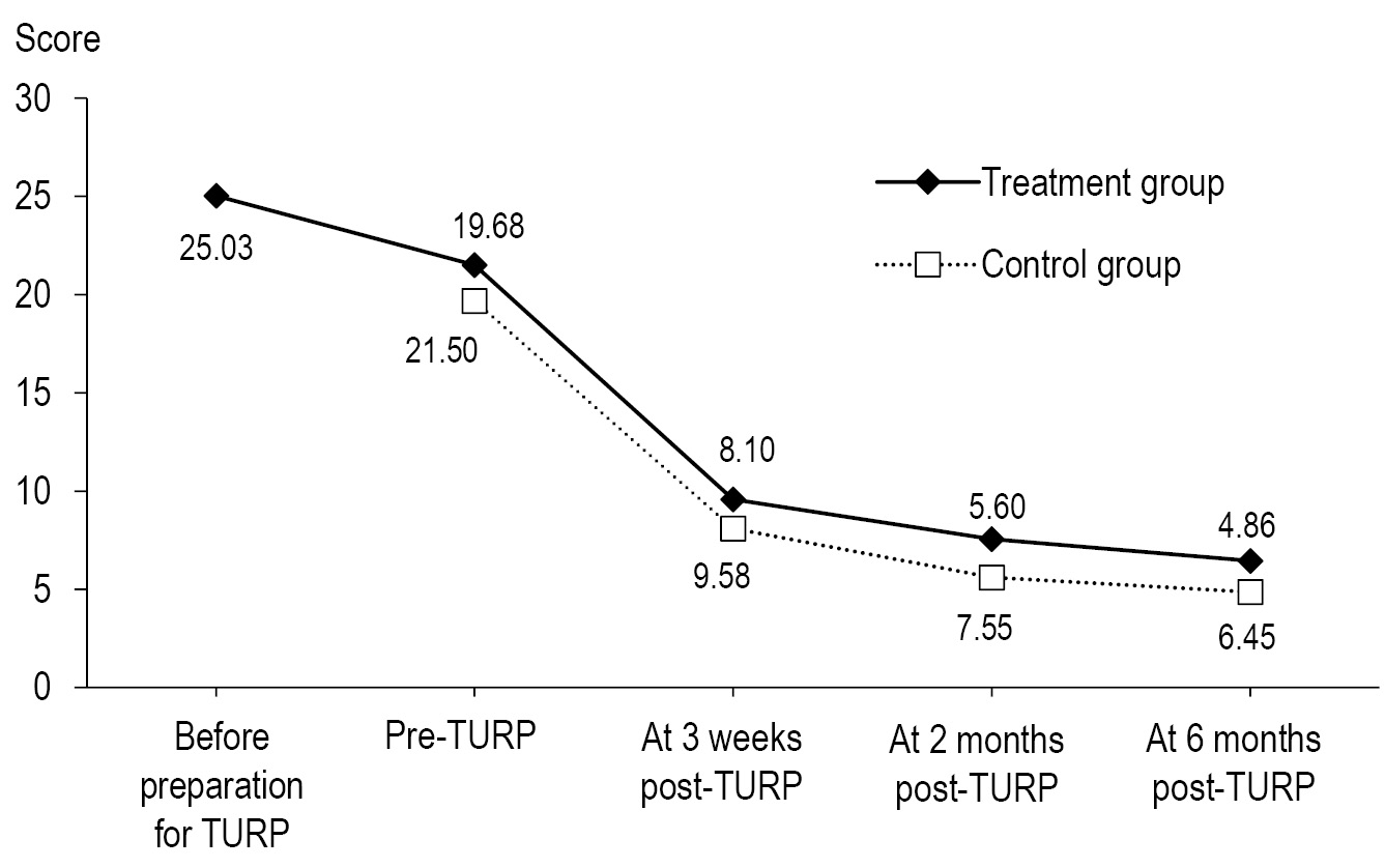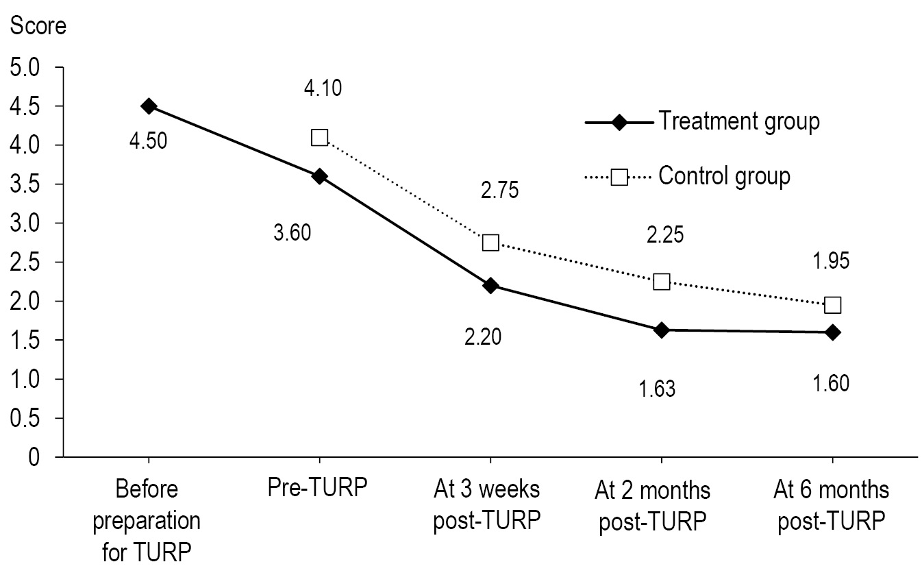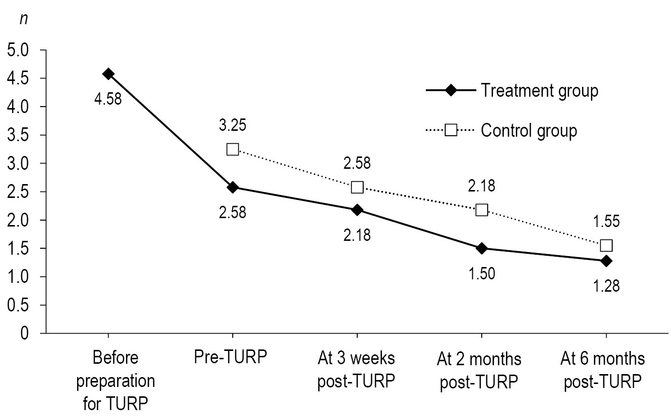 Frequency of urination at night | 4.42±0.29 | 2.22±0.25 | <0.01 |