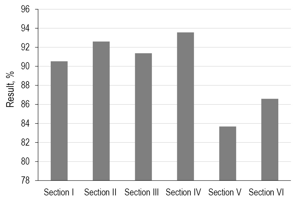 Section II (after), % Me [IQR] | 95.6 [91.5; 100.0] | 89.0 [86.6; 90.7] | 0.002 |