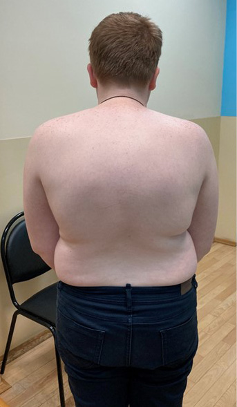 Patient V., 14 years of age. The patient reported a several-year history of back pain, which had recently been getting worse (the average pain level is 50–60 mm with occasional worsening to 80 mm on the Visual Analog Scale [VAS]). The patient had nagging and squeezing pain localized paravertebrally along the spine in the thoracic and lumbar regions. The pain significantly limited the patient’s daily activity and intensified in a sitting position and when walking a distance of more than 800–1,000 m.