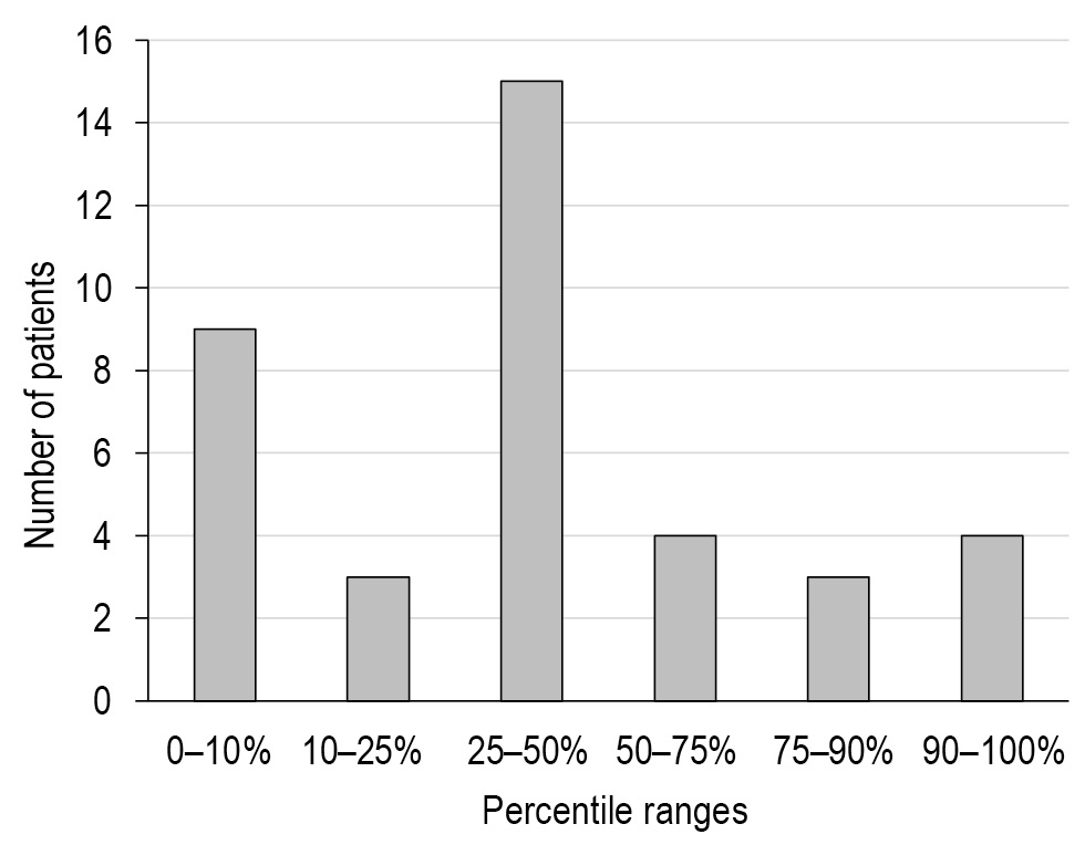 Fig. 2. The graph of the distribution of the results of the 6-minute walking test in children with multiple sclerosis by percentile intervals of standard values.