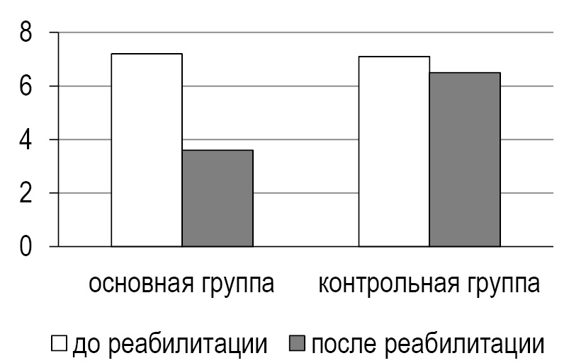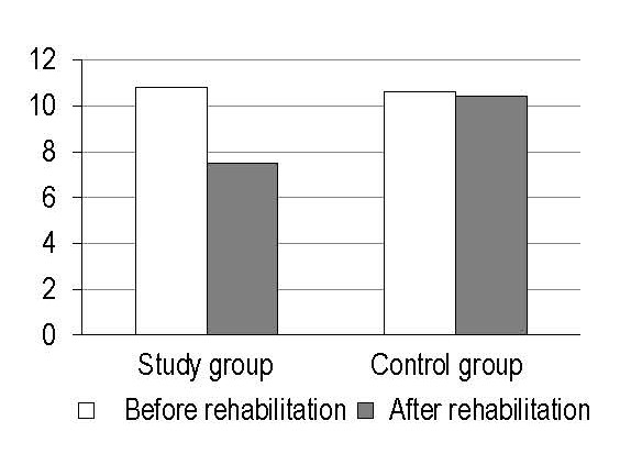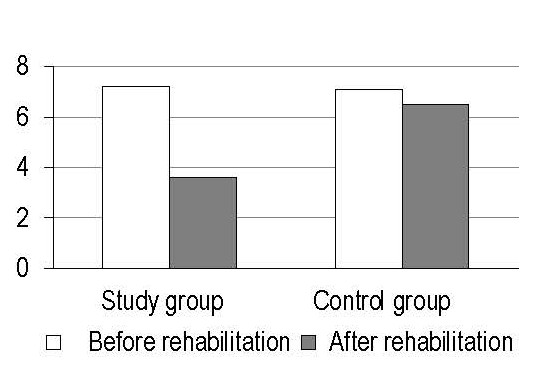Fig. 1. Changes in Visual Analog Scale pain score after rehabilitation of patients with the consequences of combat trauma.