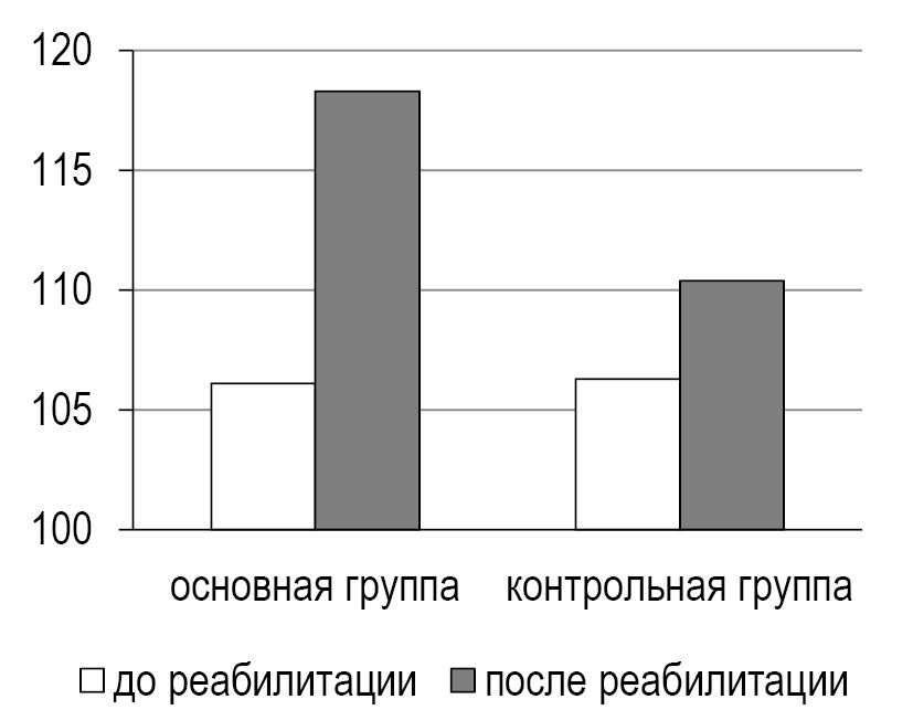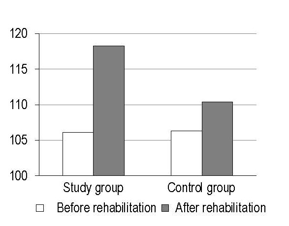 When assessing the quality of life using the FIM functional independence scale, an 11.5% improvement was noted: from 106.1±8.4 to 118.3±7.9 points (p <0.001); Fig. 2. During rehabilitation, the values of these indicators in the comparison group did not change significantly.