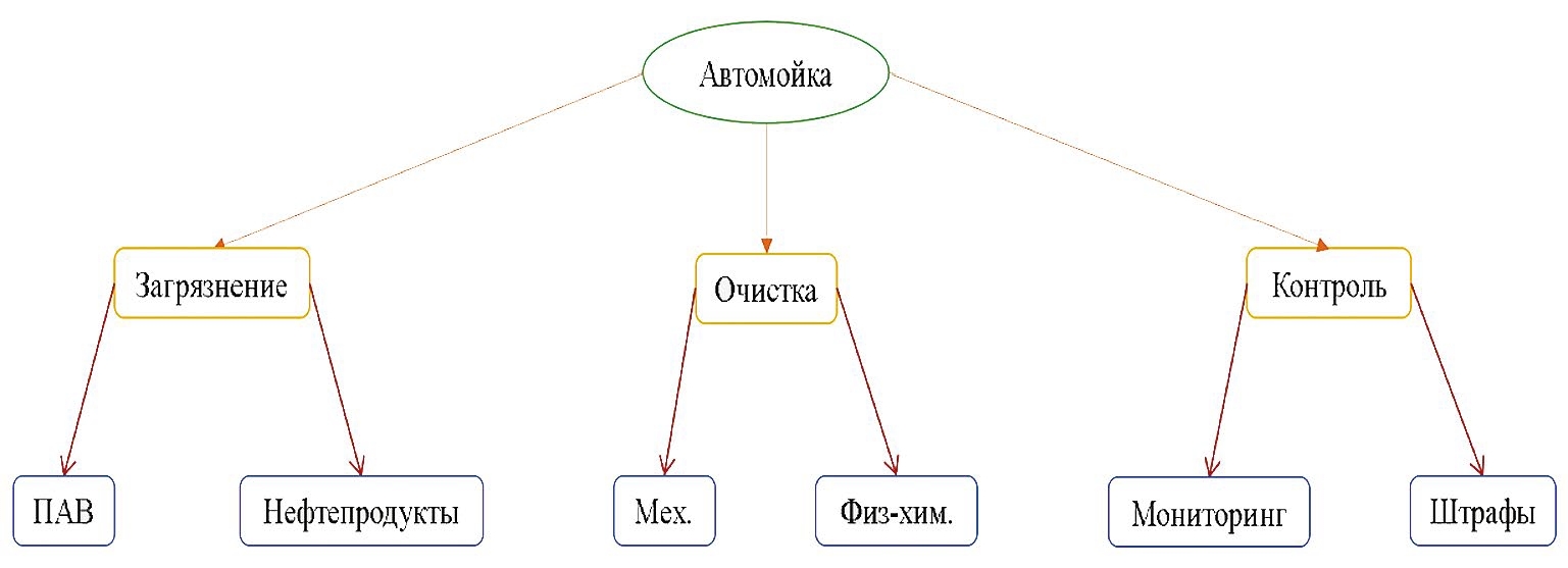 Рис. 1. Схема анализа негативного воздействия автомойки на окружающую среду