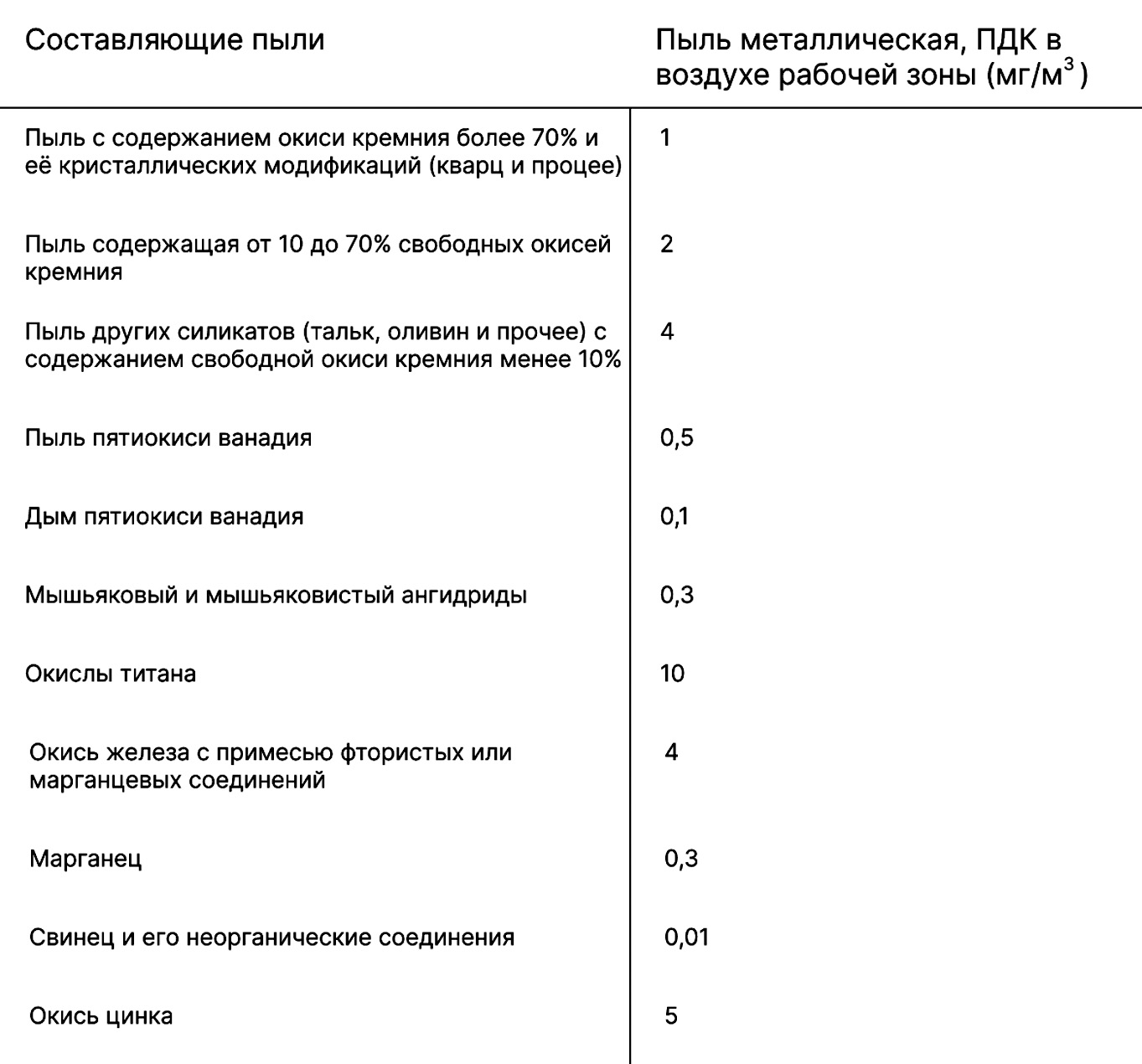 В рамках исследования были проведены замеры микроклимата и химического состава воздуха в лаборатории. Температура воздуха составила 25 °С, температура рабочих поверхностей — 25 °С, относительная влажность воздуха — 52 % (по прибору — гигрометр), скорость движения воздуха — 0, т. к. отсутствует подвод воздуха в вентиляционной системе, осуществляется только отвод. Интенсивность теплового излучения сводится к минимуму, т. к. установка SLM оснащена защитой. На рис. 1 представлен химический состав воздуха.